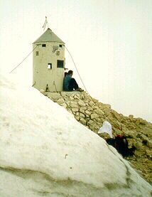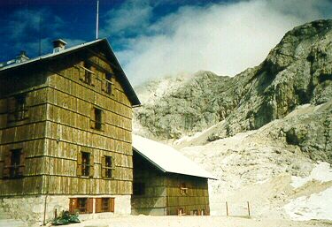 Hut Planika dom, behind the summit in coluds